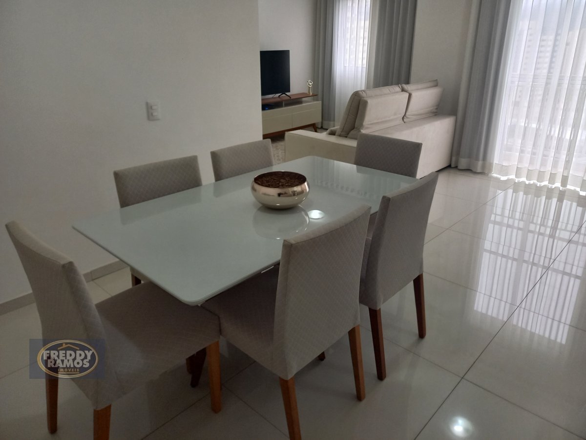 Apartamento de 70,00 metros quadrados com (02) dormitórios, sendo um suíte, sala ampla para dois ambientes (televisão e jantar), banheiro social, cozinha, área de serviço, sacada e 02 (duas) vagas fixas descobertas.
