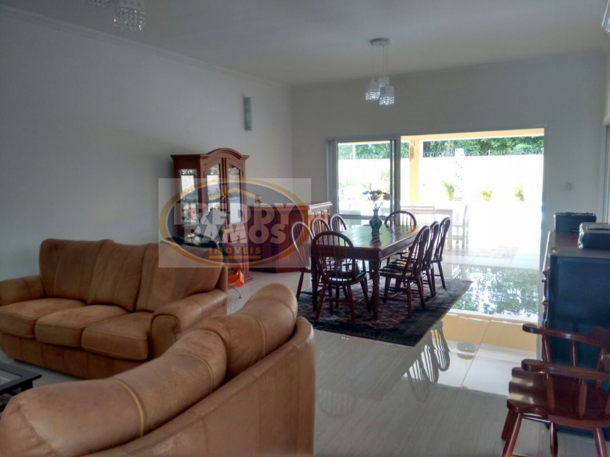 Casa térrea em condomínio fechado, contendo três suítes, sendo duas com closet, ampla sala de estar/jantar, escritório, sendo esses cinco ambientes climatizados,sala de ginástica, lavabo, ampla cozinha com armários planejados, área de serviço com banheiro, ampla varanda com churrasqueira e despensa, piscina de alvenaria, 1 banheiro externo, garagem coberta para dois carros e espaço para mais dois, aquecedor solar, entrada para internet em todos os pontos de antena (9 pontos).
